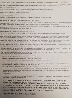 What do customers say about Metro Auto Care?